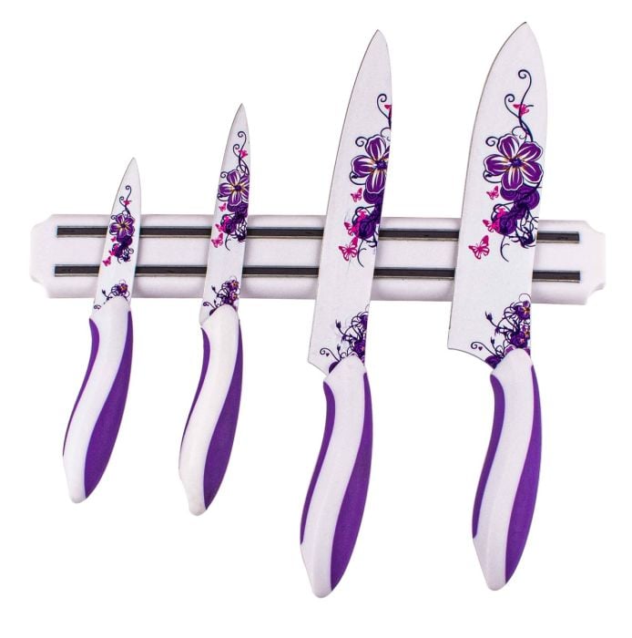 - محتويات الطقم : (4 سكاكين + حامل سكاكين)